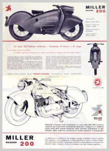 Miller-Balsamo dates back to around 1919 in Italy, when brothers Ernesto, Edgardo and Mario Balsamo imported and sold American-made Excelsior and British-made Ariel motorcycles. Wishing to expand their horizons, in 1921 the brothers designed their own machines and powered them with 125cc and 175cc 4-stroke Swiss-built Moser engines. Shortly after, in 1924, lightweight machines equipped with a 2-stroke 98cc engine appeared, and these were essentially powered bicycles marketed under the names Excelsiorette and Miller. By the mid-1920s, the company’s motorcycles were more sport-oriented machines that proved rather successful in racing events.