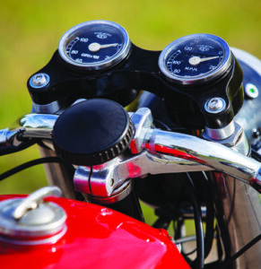 In the end, he rectified the problem with an updated voltage regulator and a traditional wet-acid battery. “The bike had a Dunstall silencer on it and I found that to be a bit restrictive above 4,500rpm,” Bob says. In late spring 2022, he ordered a Continental-style megaphone from Feked.com and installed it on the header. “It runs much nicer with that silencer fitted,” he notes. Most recently, to suit Bob’s taller stature, he removed the low rise handlebars and installed café-racer Ace bars to tuck himself closer to the gas tank. “I’m not as upright and it’s a more aerodynamic riding position, and it’s very comfortable for me.”