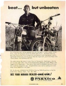 As race parts became easily available, the Hodaka Ace was the basis for all sorts of offroad competitions. Ace 90s won their class in the 500-mile Greenhorn Enduro (held in the unforgiving mountains of Eastern California), the National Trail Bike Championship and the Pike’s Peak Hillclimb.