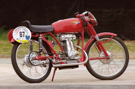 At the end of World War II, Ceccato, like many budding Italian entrepreneurs, surveyed the transportation industry of post-war Italy and decided to build and market a clip-on engine for bicycles. Lightweight motorcycles were not far behind, and the company started looking into motorcycle racing. This is where the story gets interesting, because there’s a connection between Ceccato and Fabio Taglioni, one of Italy’s best-known motorcycle designers.