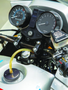 On the build sheet, various stages of tune could be checked off — with each higher stage costing more than the one that preceeded it. According to the website Vetter Mystery Ship, while the base Mystery Ship was equipped with the stock KZ1000 powerplant (1,015cc) and Yoshimura 4-into-1 exhaust system, a $799 Stage I tune done by Yoshimura brought capacity to 1,105cc and developed 101 horsepower with a 10,000rpm camshaft. For $1,134, the Stage II tune built on Stage I, seeing a ported and polished cylinder head and upgraded 10,500rpm camshaft added to the equation to produce 108 horsepower. Stage III, at $1,348, added oversize valves to bring horsepower to 116. The price had to be requested for Stage IV, which took the engine to Superbike spec.