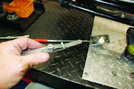 10. I used a mirror to see up under the case to show the gap, and then used feeler gauges to measure that gap. I also used a zip tie to hold the feeler gauges together to get the correct measurement.