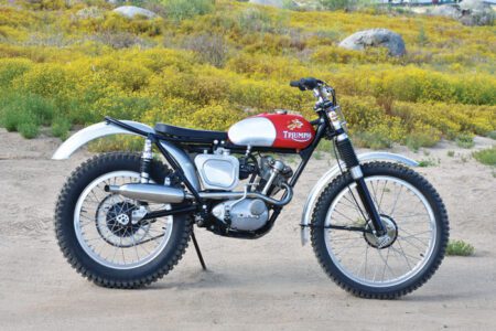 Retired racers have a saying: “The older I get, the faster I was.” But with his recent success in trials competition, perhaps Thad The Younger and his 1964 trials-prepped Triumph T20SM Mountain Cub have given retired racers a new saying: “The older I get, the slower I can go!” MC